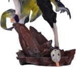 نحت مفصل، عباءة متدفقة، ووضعية جاهزة للمعركة على قاعدة صخرية.